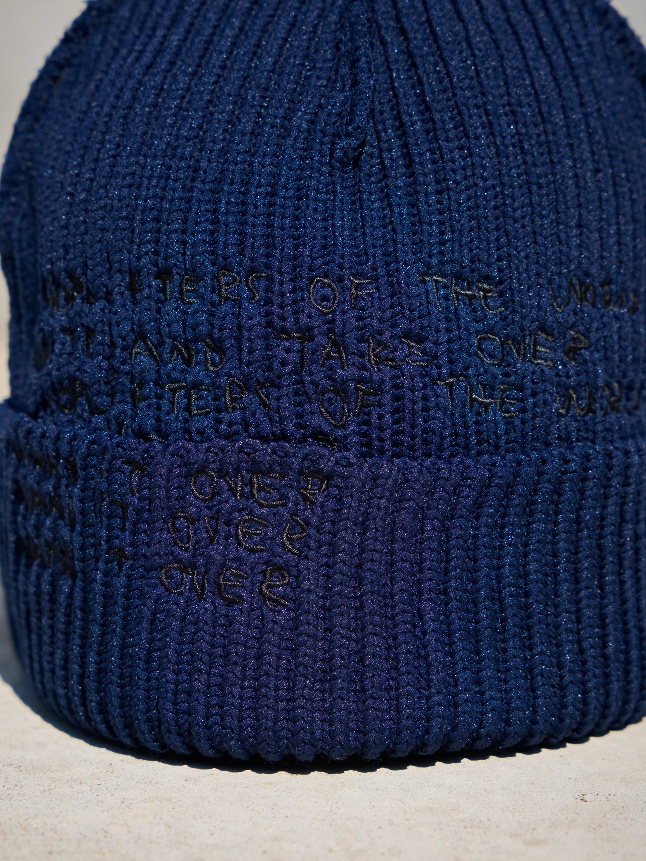 リサイクル原料を使用したビーニーは、インサイドアウト仕様。内側に隠しているものが外に出てくると、それだけてユニークなのだ。