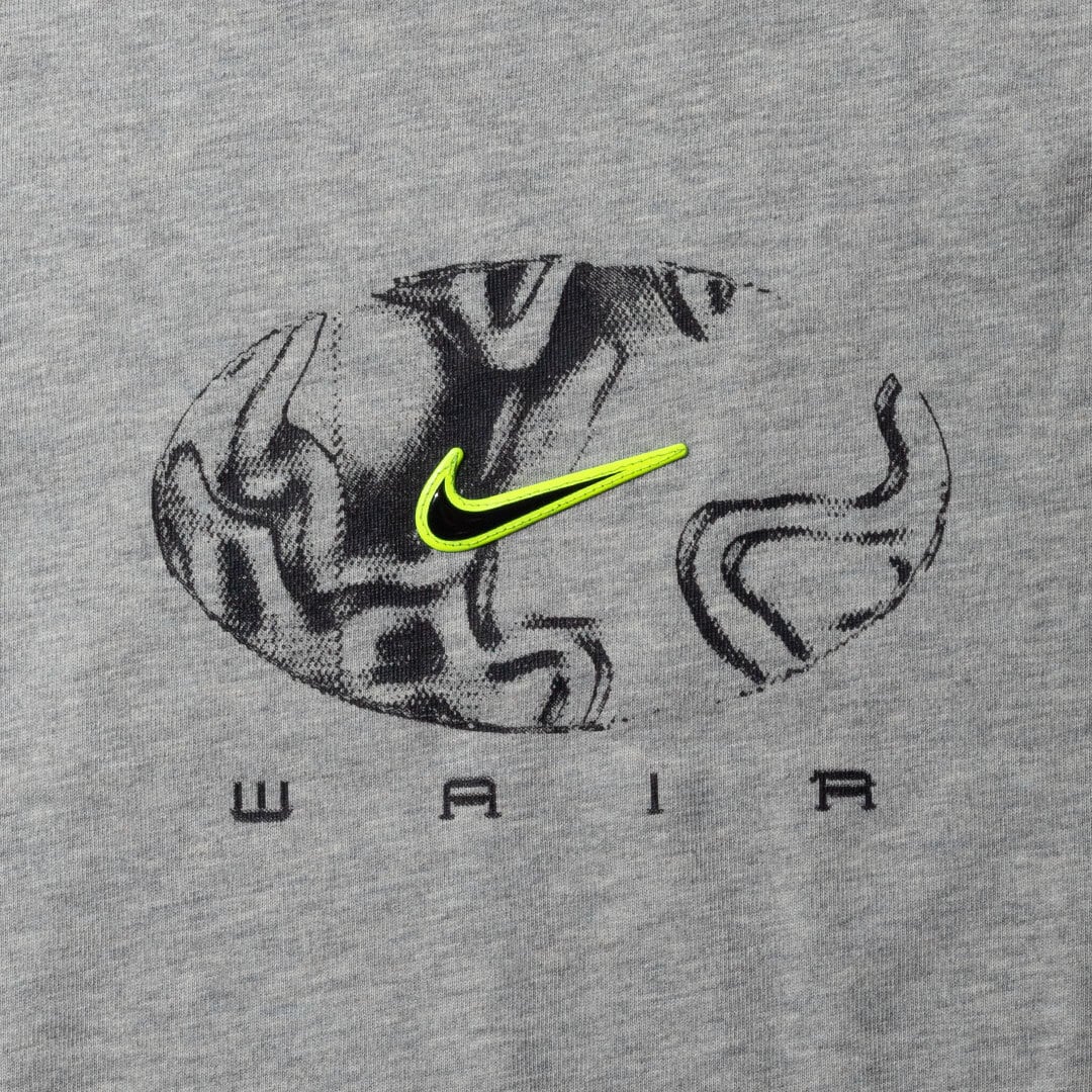 NIKE SB ISHOD SKATEBOARD TEEは、立体的なネオンカラーのスウッシュやテーマカラーのグレー、裾のタグなど、随所にAIR MAX 95 グレー/ネオンを感じられるデザインがカッコいい。