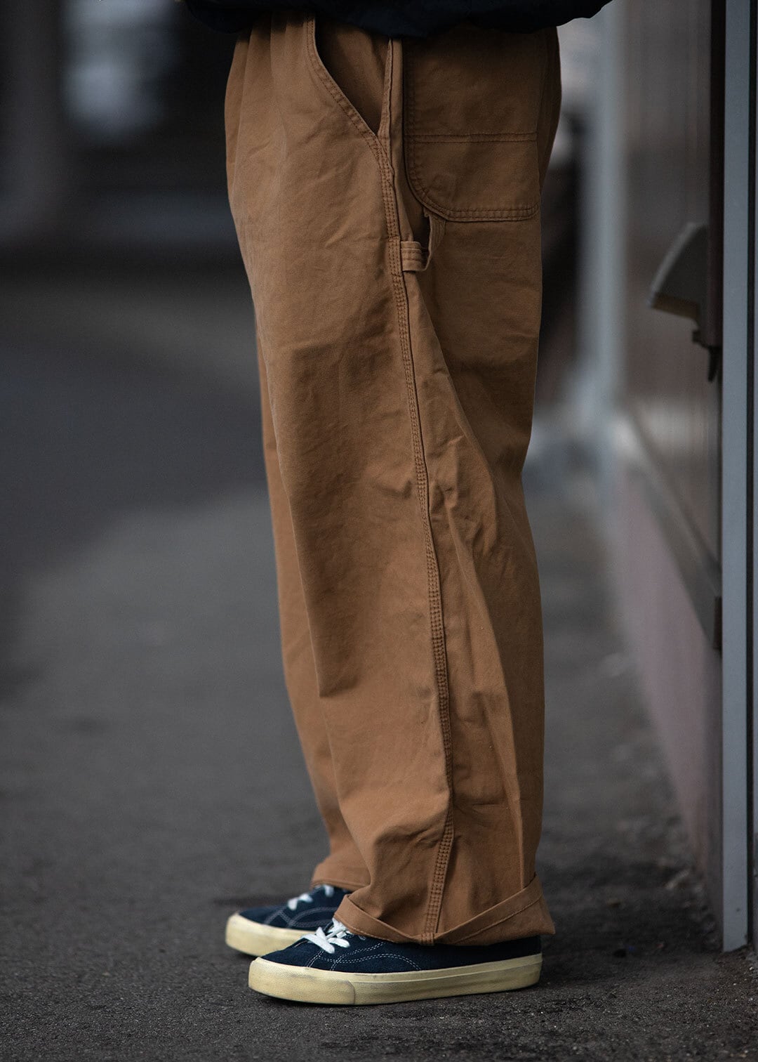 ただ、ジャストサイズで履くと、やっぱり作業服。形もどストレートなシルエットだから、ストリートな雰囲気が足りない。