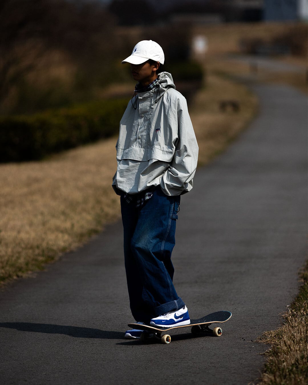 ただ、ジャストサイズで履くと、やっぱり作業服。形もどストレートなシルエットだから、ストリートな雰囲気が足りない。